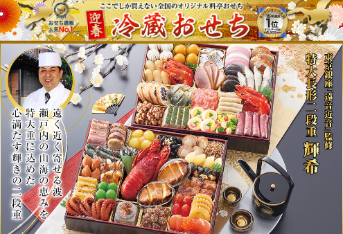 自社開発のおせちに加えて様々なお店のものを扱っている |